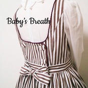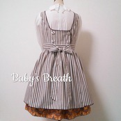 後ろについたくるみボタンと長めのリボンが可愛いエプロンです。