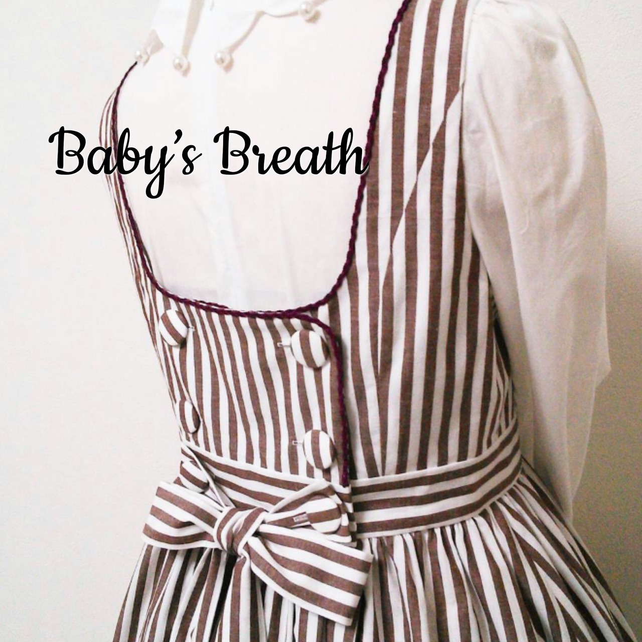 後ろ開きですが、前でボタンを閉めてから後ろにまわして肩を通してお召しください。
