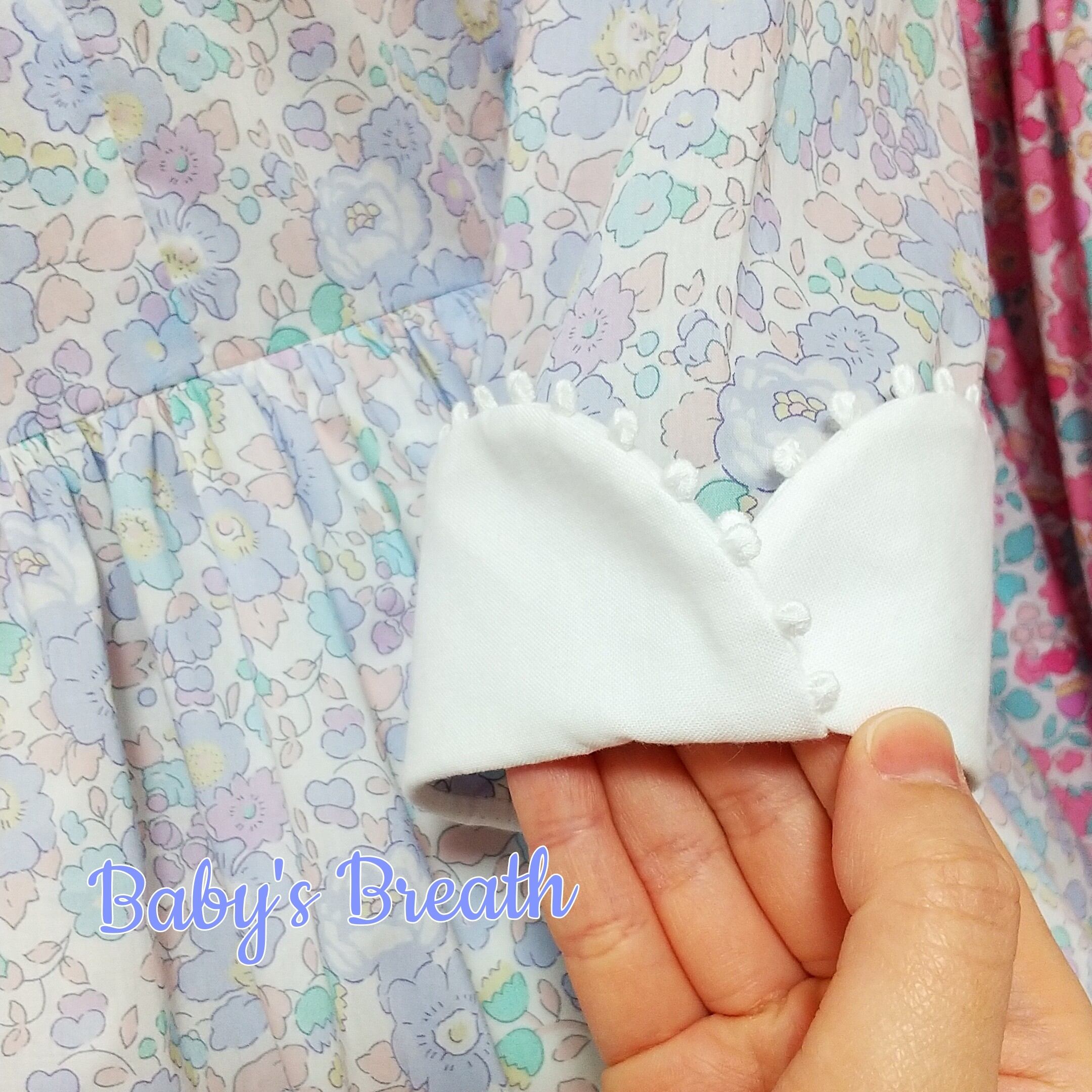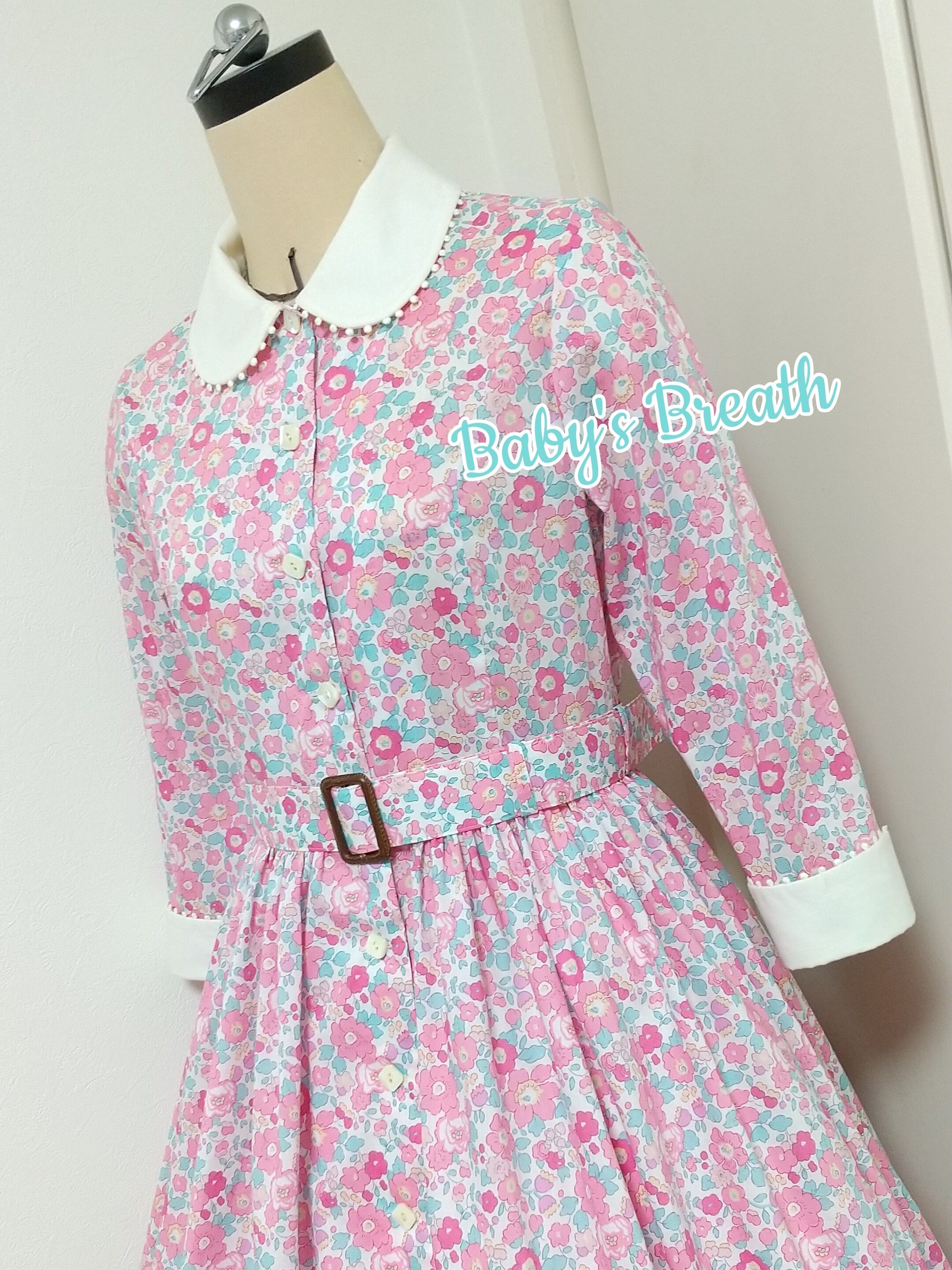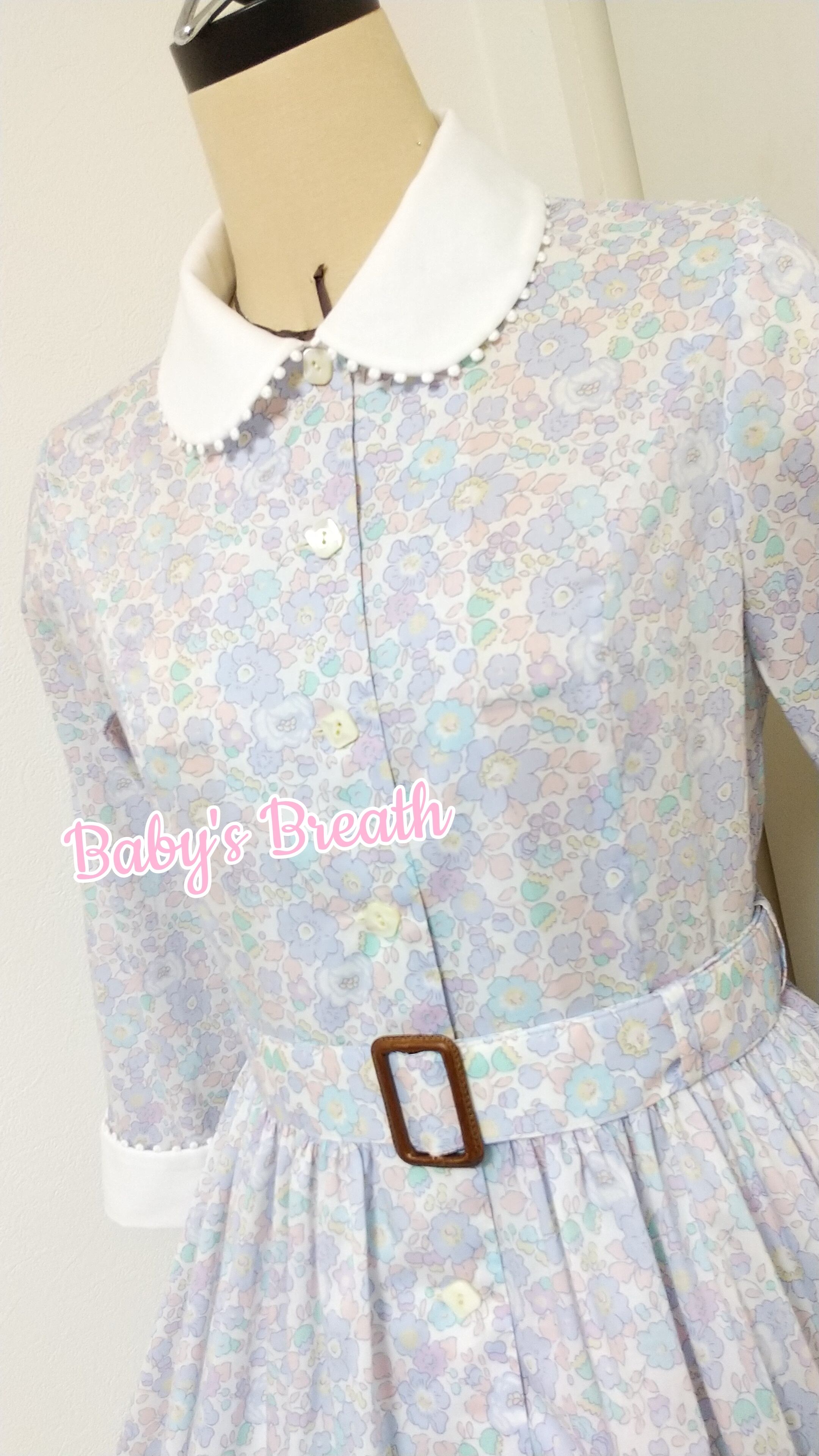 淡い色合いが綺麗なリバティの生地を使用したワンピースです。